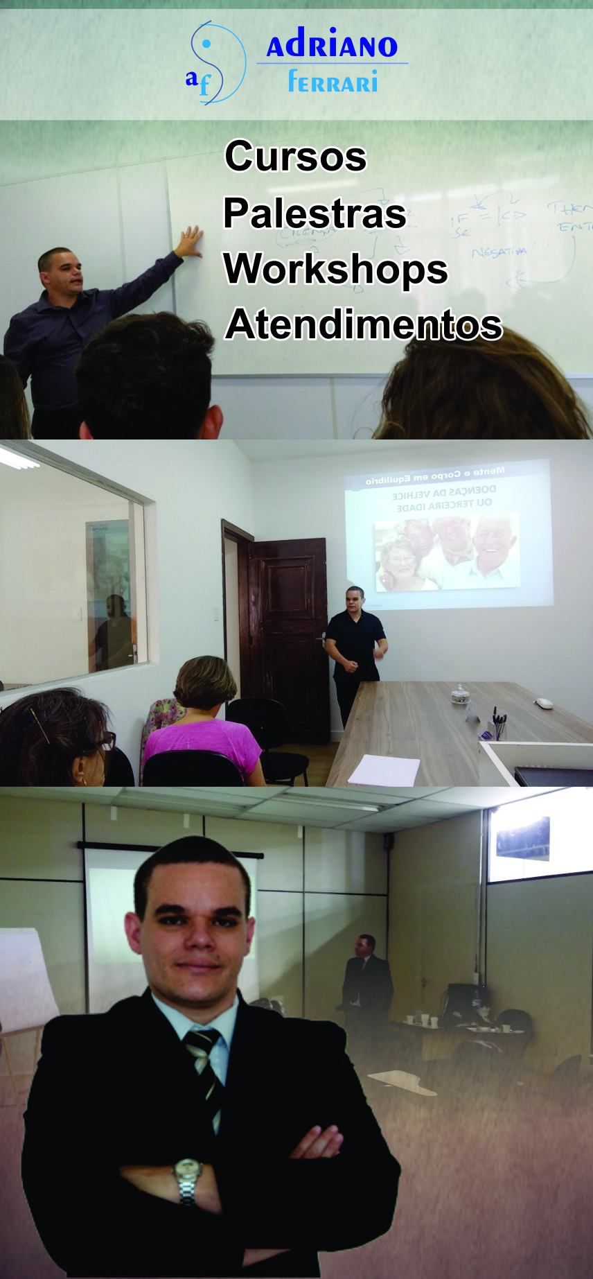 O Professor Adriano Ferrari ministra diversos cursos de terapias alternativas e de desenvolvimento pessoal.